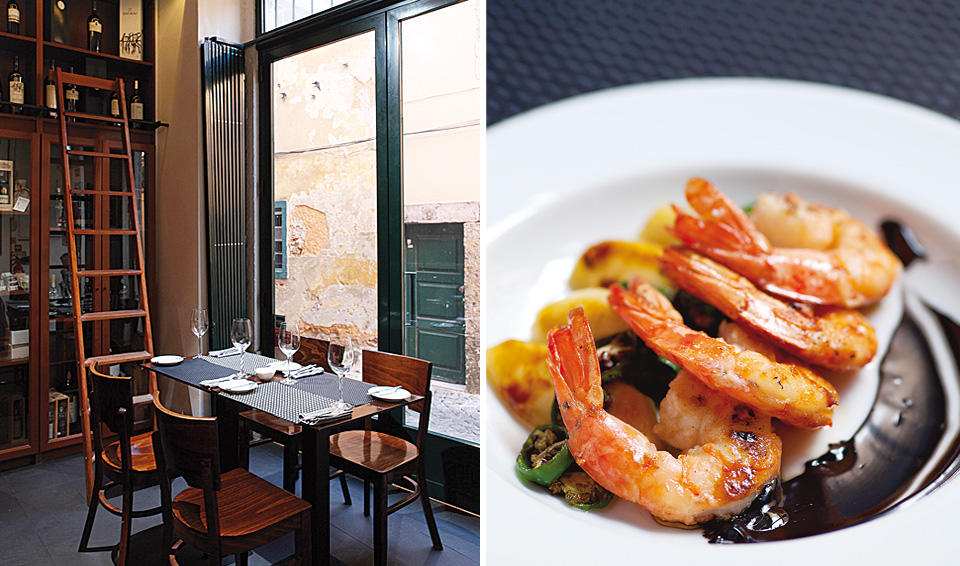 O primeiro mérito, naturalmente, é dos recursos humanos: da delicadeza proativa com que recebem Nelson Guerreiro e Ângelo Santos, escanções e primeiros intérpretes da criatividade do chef Ricardo Gonçalves. Mas, depois, há o lugar. Litografias de Paula Rego dispersam-se pelas paredes, disputando e logo partilhando o espaço com a iconografia vinícola. A sala é bem climatizada, com tetos altos e mobiliário tão simples como confortável. Há jornais à entrada, em escaparates, sugerindo a possibilidade de uma refeição a solo, prazer que a contemporaneidade estupidamente anatemizou – e depois há vinho, bastante vinho: cerca de oitenta referências, todos de qualidade média-alta para cima, e que em regra se vendem a preço fixo (4 euros o copo ou 20 euros a garrafa). Original método de escolha: binóculos – uns binóculos comuns para os vinhos bons e uns binóculos de ópera para os superlativos da adega especial, estes vendidos a preços diferenciados, mas igualmente expostos pelas prateleiras.