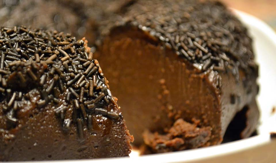 Bata todos os ingredientes (exceto o chocolate granulado) no liquidificador até obter um creme homogéneo. Verta numa forma de pudim que possa ir ao micro-ondas, previamente untada com manteiga, e coza na potência alta entre 7 a 10 minutos. Deixe arrefecer, desenforme morno e enfeite com o granulado. Faz um vistão em qualquer mesa!