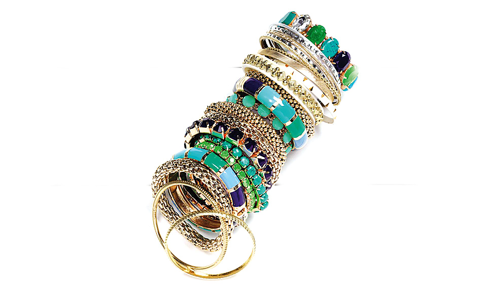 1 Vestido comprido Pinko 463 euros e pulseira Mini Snake da Aristocrazy 129 euros. 2 Look Haizhen Wang e sandálias Doris da Melissa 75 euros. 3 Vestido Gucci estampado e sandálias com plataforma Paris Hilton 124,95 euros. 4 Túnica bordada Dolce&Gabbana e conjunto de pulseiras Acessorize. 5 Vestido colorido Missoni e carteira Varano Aldo, 59,90 euros.