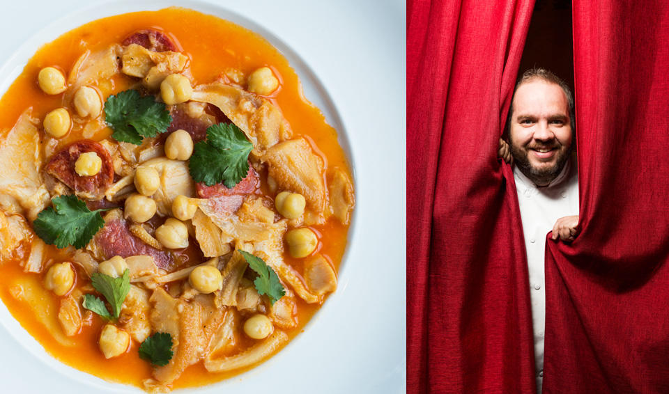 Guisados e ensopados, comida de tacho, um cozido ou uma feijoada. São maravilhas da mesa portuguesa, «mas que em termos de aspeto são o paralelo de um prédio de época com janelas de alumínio e marquises nas varandas». As palavras são de José Avillez. O ano passado, trouxe para o seu Belcanto uma segunda estrela Michelin – e foi a primeira vez que um restaurante lisboeta alcançou tal feito (há dois restaurantes em Portugal com classificação semelhante, ambos no Algarve e ambos liderados por chefs austríacos). Uma boa parte do seu trabalho é reinventar a comida tradicional e, em 2014, começou a servir na ementa uma versão muito particular do cozido à portuguesa. «Foi um dos pratos mais difíceis que compus, porque mexe com as memórias de toda a gente.»