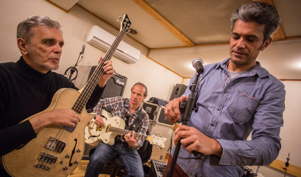 Parece mentira mas é verdade. Como é verdade que 99 por cento das entrevistas com os GNR, 34 anos de estrada, são na realidade sobre a perspetiva e a persona de Reininho, eucalipto involuntário que ofusca tudo à volta, com todo o mérito e toda a injustiça que isso possa conter – e contém. Prometendo não reincidir no erro, marcámos reportagem com os três da banda, merecido patamar de igualdade entre todos. Jorge Romão, o baixista, é o último a chegar ao estúdio. Reininho, o primeiro. A pé, como Tóli César Machado, compositor, guitarrista, ex-baterista e, dos três, o único que cofundou a banda em 1981 – na altura com Vítor Rua e Alexandre Soares. Era suposto chover, mas está um sol de primavera. Tóli, 53 anos, já cumpriu a habitual corrida matinal no Parque da Cidade, ritual que substituiu pelo tabaco há sete anos, e Romão, 51, já deixou os filhos na escola. Não fora dia de entrevista e tinha também praticado remo, atividade que partilha desde o início do ano, quatro vezes por semana, com os dois herdeiros mais novos, Lopo e Dinis, no Sport Clube do Porto. Rui vem direto do leito. O único desporto que pratica é meditação e quem o conhece sabe que é a sério.