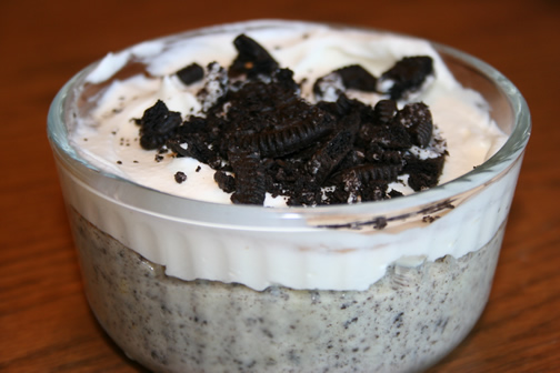 Parta as bolachas em pedaços maiores ou menores, a gosto, e reserve. Bata as natas bem firmes e envolva com cuidado o leite condensado, usando uma colher para não baixar demasiado. Misture as Oreo esmagadas até obter um creme homogéneo e leve ao frigorífico numa taça grande de vidro (ou ao congelador, se preferir uma versão mais refrescante da sobremesa). Vai ver que a mousse de chocolate terá uma rival à altura daqui em diante.