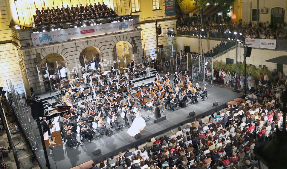Esta é a sétima edição do Festival ao Largo. O evento, que termina a 25 de julho, tem servido de chamariz para o trabalho de quem dedica a vida à música lírica. Desde a primeira edição, em 2009 – que se ficou por duas noites de concertos –, até à presente, em que estão previstas 15 – o festival já foi visto por mais de 120 mil pessoas. Um número que deverá chegar aos 150 mil no final deste mês. O primeiro concerto da edição deste ano é um bom exemplo de como a iniciativa é uma aposta ganha. As cadeiras tinham acabado de ser colocadas e já havia quem estivesse à espera de um lugar sentado – eram 17h00 de sexta-feira, 3 de julho. Faltavam quase cinco para o início. Quem ali se deslocou de propósito, ou quem por lá passou por acaso, ouviu obras de Copland, Bernstein, Morricone, Lloyd Webber ou Dvorak, apenas com o céu por abrigo. Bravo.