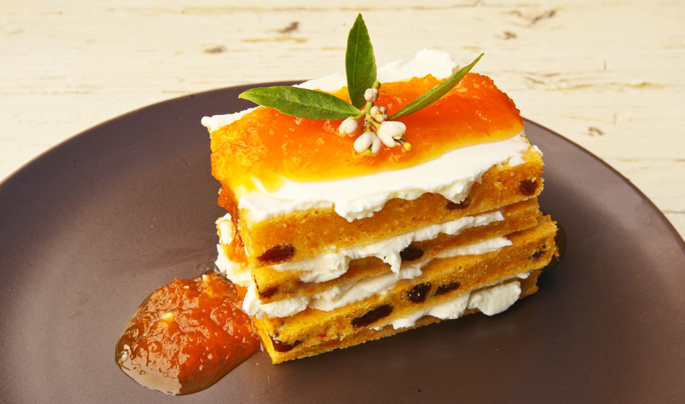 Rale as cenouras o mais fino possível. Bata muito bem os ovos com o açúcar e o óleo e misture com a cenoura ralada. Junte o sumo e a raspa da laranja, o gengibre ralado e misture a farinha peneirada com o fermento. Por fim, adicione as passas. Leve ao forno a 180ºC em forma untada com manteiga e polvilhada com farinha, até cozer. Depois de frio, corte o bolo ao meio e recheie com doce de cenoura ou/e mascarpone batido com o açúcar. Sirva simples ou cubra com o mascarpone ou as natas batidas com o açúcar. Também fica bom com uma calda de sumo de laranja (neste caso, não recheie).