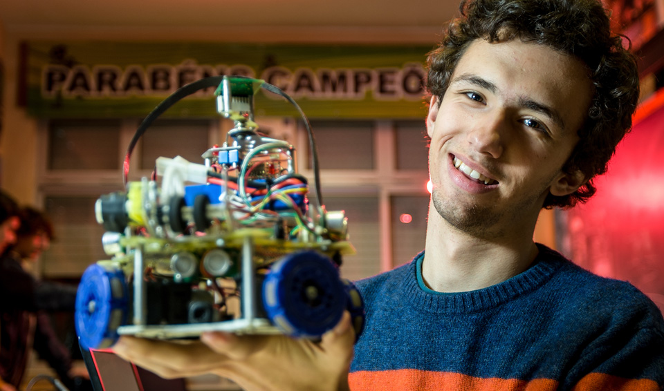 A edição deste ano do Robótica 2015 termina hoje na Universidade de Trás-os-Montes e Alto Douro, em Vila Real. Dali sairão os apurados para o campeonato do mundo. Alexandre Carvalho tem apenas 19 anos, mas já ganhou várias edições como treinador.