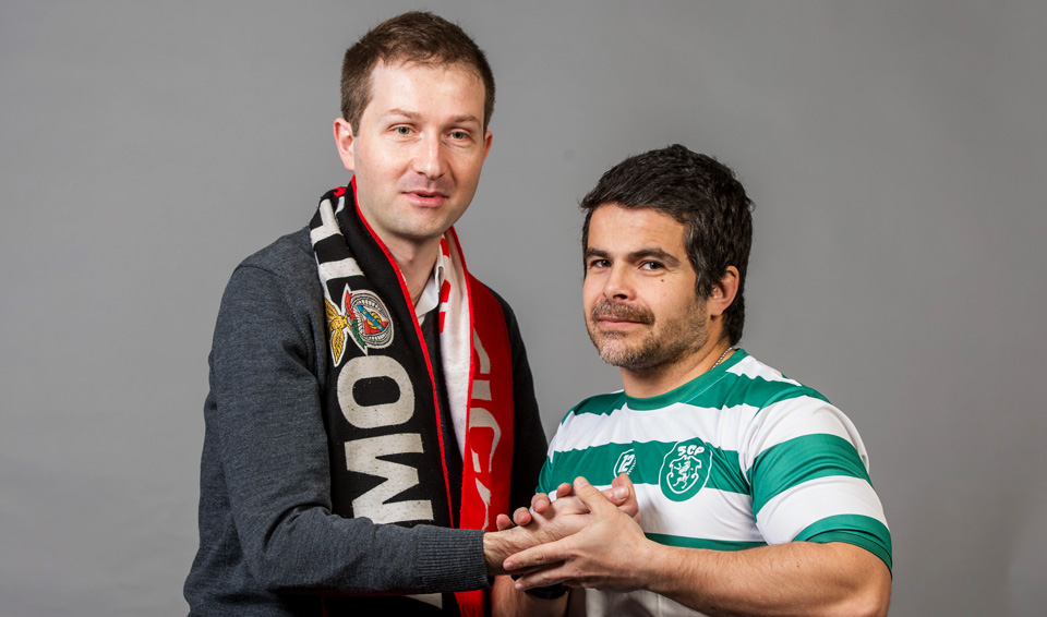 Um fanático do Benfica e um doente do Sporting. Picaram-se e depois fizeram charme, desdizendo a máxima de Jorge Jesus: «O fair-play é uma treta.» Um derby com Miguel Costa e Paulo Almeida. Humor e clubite aguda lado a lado, antes de saberem o resultado dos jogos das suas equipas nesta jornada, que termina amanhã com o Belenenses-Sporting, e com as equipas separadas por dois pontos.