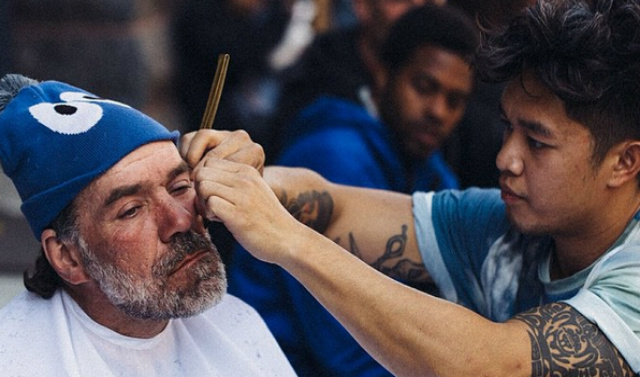 Ajudar não custa nada. Cortar o cabelo também não. Mark Bustos, Joshua Coombes e Nasir Sobhani são barbeiros e disponibilizam-se para cortar o cabelo e aparar a barba aos sem abrigo. Não há dinheiro envolvido. Um sorriso no rosto daqueles que ajudam é o suficiente para pagar.