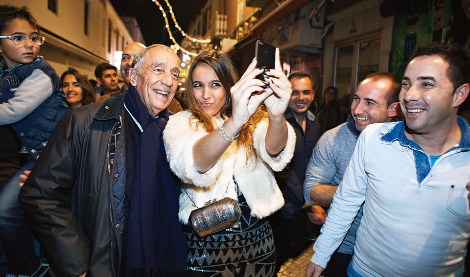 Houve dias em que o táxi (e o Sr. Vítor) eram trocados por um pequeno Mercedes, propriedade do candidato e guiado pelo próprio. Às vezes aparecia a sua Sofia, como foi o caso do dia 31 de dezembro, no Algarve. Fomos visitar a região com o objetivo de ver e ouvir os comerciantes de Albufeira que tinham sido vítimas das cheias de dezembro. Encontramo‑nos na praia, a meio da tarde do último dia do ano de 2015. Não éramos os seis habituais mas apenas quatro, não contando com o presidente da câmara. Os muitos que por ali estavam a gozar um quente sol algarvio transformaram o encontro num pequeno comício, obrigando M.R.S. a ser modelo fotográfico de dezenas de selfies, uma nova fórmula de armazenar afetos. A visita aos comerciantes esteve em perigo, dada a grande quantidade de pessoas que quiseram comprovar e mostrar aos amigos que estavam naquele lugar com o celebre professor dos comentários de domingo da TVI.