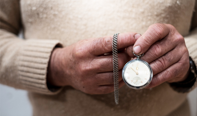Vai batucando na mesa, as mãos encorpadas de que dependia o ganha-pão, como pedreiro, na cortiça, na madeira, «só trabalhos duros». As mesmas mãos que com carinho afagam um relógio de bolso, que em menino cobiçava. «Eu era pequeno e o meu pai comprou um relógio de algibeira. Eu gostava daquilo e dizia ao meu pai: “Quando morrer, o que me deixa é o relógio”. » Foi parar às mãos de Eduardo um dia antes de a mãe também se matar. «Vai buscar o relógio do teu pai», mandou ela, quando o filho chegou a casa. Eduardo estava a acompanhar a mãe naqueles primeiros dias de viuvez, revezando-se com uma irmã.