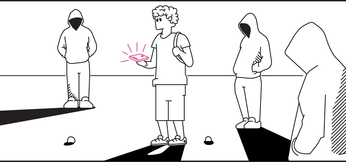-Eu estava a chegar perto da paragem do autocarro quando vi três rapazes que olhavam para mim desde o outro lado da rua. Taparam a cabeça com o capuz da camisola e avançaram.