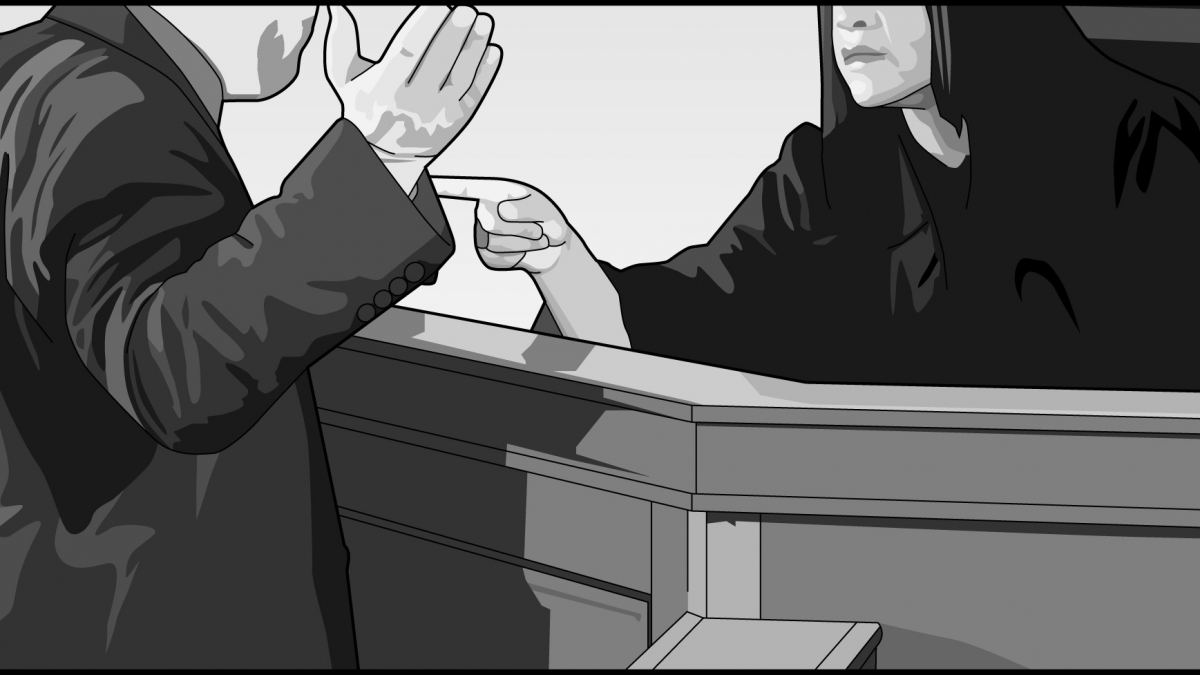 Estava outra de vez de pé mas agora é que seria abalroado de verdade. Por uma juíza no tribunal.