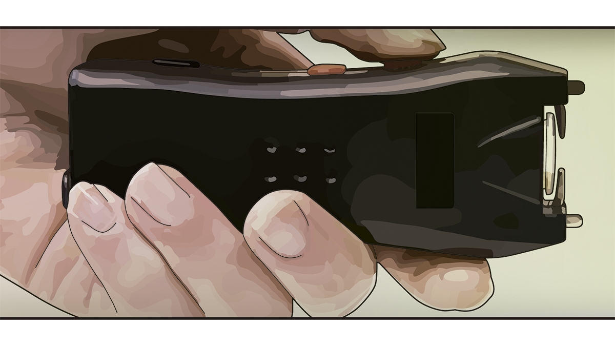 – Vejo uma embalagem em plástico de um taser.
