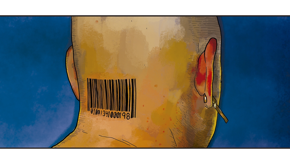 O pescoço de João, debaixo da polida careca, parecia um catálogo de estabelecimento prisional: tatuagem com cruz celta e, mesmo atrás da nuca, um código de barras incrustado na pele, linhas paralelas e pretas num rectângulo, como se João fosse um boneco grande comprado no híper. Nos pulsos, serpentes e facas retorciam-se em tinta azul-escura.