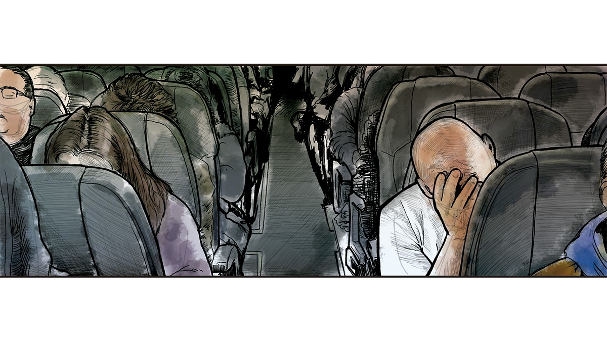 – “Olha, está ali o tal senhor!” e foi ter com ele. Falaram na parte de trás do avião. Não ouvi a conversa. Mas quando o meu amigo volta, eu pergunto: “Então, como está isso?”. “Ele vai outra vez adiar o pagamento”, respondeu.