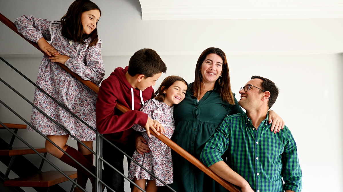 “Temos sempre a porta aberta para familiares e amigos.” Madalena Castro Salvaterra sublinha “o gosto e a alegria” de receber visitas. A educadora de infância de 39 anos é casada com Ricardo Salvaterra, engenheiro geógrafo de 42 anos, e desta união nasceram o Sebastião há 12 anos, a Marta, há nove, e a Matilde, há quatro. Moram em São Domingos de Rana, uma localidade do concelho de Cascais onde “toda a vida” a Madalena viveu, e contam como se conheceram e apaixonaram. Ele, natural de Portalegre, Alentejo, foi estudar para Lisboa e não raras vezes ia para casa de um colega de curso, um dos 12 irmãos dela. “A minha mãe fazia comida a mais e dizia que ‘quem dá comida a 15, dá a mais’”, comenta a sexta de 13 irmãos. E, se as visitas no dia a dia são uma constante, quando há um nascimento são ainda mais e, nesta família, são muitos. “A minha mãe tem 34 netos e vêm dois a caminho. O nosso quarto filho, Pedro, e um sobrinho”, relata Madalena.