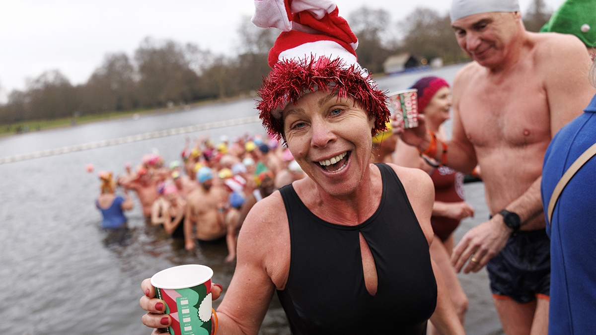 São 100 jardas (91,4 metros), nadadas religiosamente a 25 de dezembro, já lá vão 161 anos. A Peter Pan Cup, corrida de natação promovida anualmente pelo The Serpentine Swimming Club, é considerada a mais antiga do Mundo, tendo-se tornado um marco incontornável do The Serpentine Lake, em Hyde Park (Londres) – cujas águas, nesta altura do ano, são particularmente geladas. Na foto, uma nadadora celebra o fim da prova, com um look bem natalício.