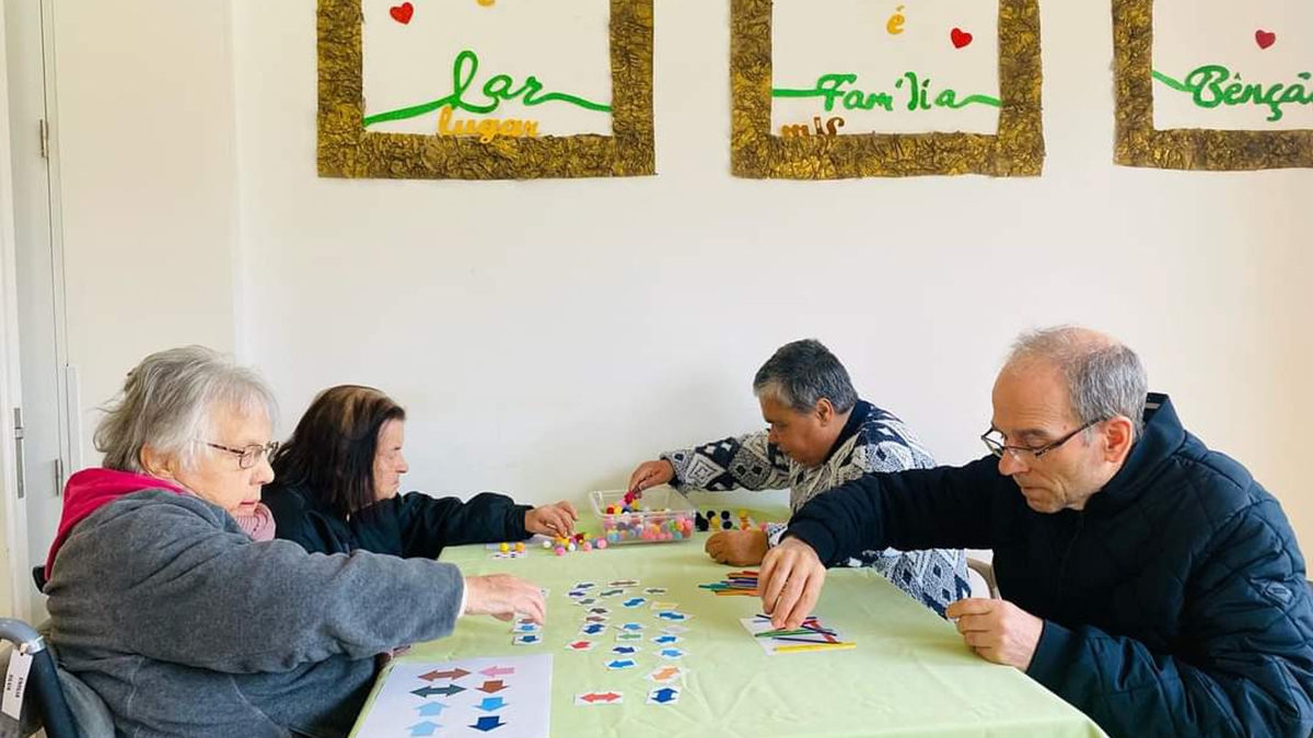 No Lar e Centro de Dia Padre Américo, em Paço de Sousa, Penafiel, a estimulação cognitiva também é prática regular. Na sala de convívio, há um espaço para esse trabalho e uma frase na parede que diz: “Envelhecer é inevitável, ficar velho é opcional”. O corpo e a mente precisam de exercício para se manterem em forma, ano após ano.
