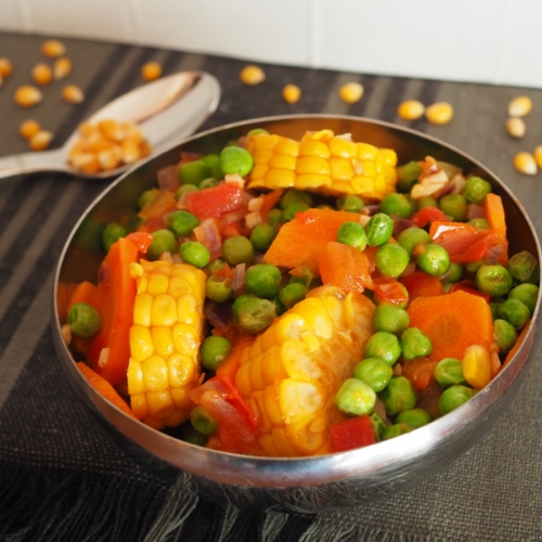 - Corta-se o pepino e a cenoura em pedaços de tamanhos semelhantes. Adicionam-se as fisális, depois de lavadas e cortadas em pedaços. Envolve-se hortelã (ou outra erva) a gosto.